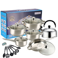 Factory Wholesale 12 Pcs Gold Handle Soup Pots Stainless Steel Cooking Pots Milk Pots and Pans Casserole Kitchen Cookware Sets